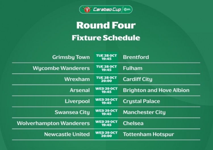 联赛杯第4轮阿森纳对阵布莱顿利物浦迎战水晶宫时间定于10月30日3点45分_英超在线直播免费