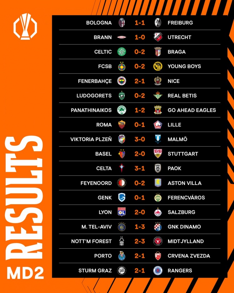 比赛中,亨克以0-1输给费伦茨瓦罗斯,费耶诺德也在与维拉的较量中以0-2落败,这两队的失利让他们的前景变得复杂。最后,巴塞尔以2-0战胜了斯图加特,继续保持良好的状态,而波尔图则以2-1击败红星,全身心投入到接下来的比赛中。